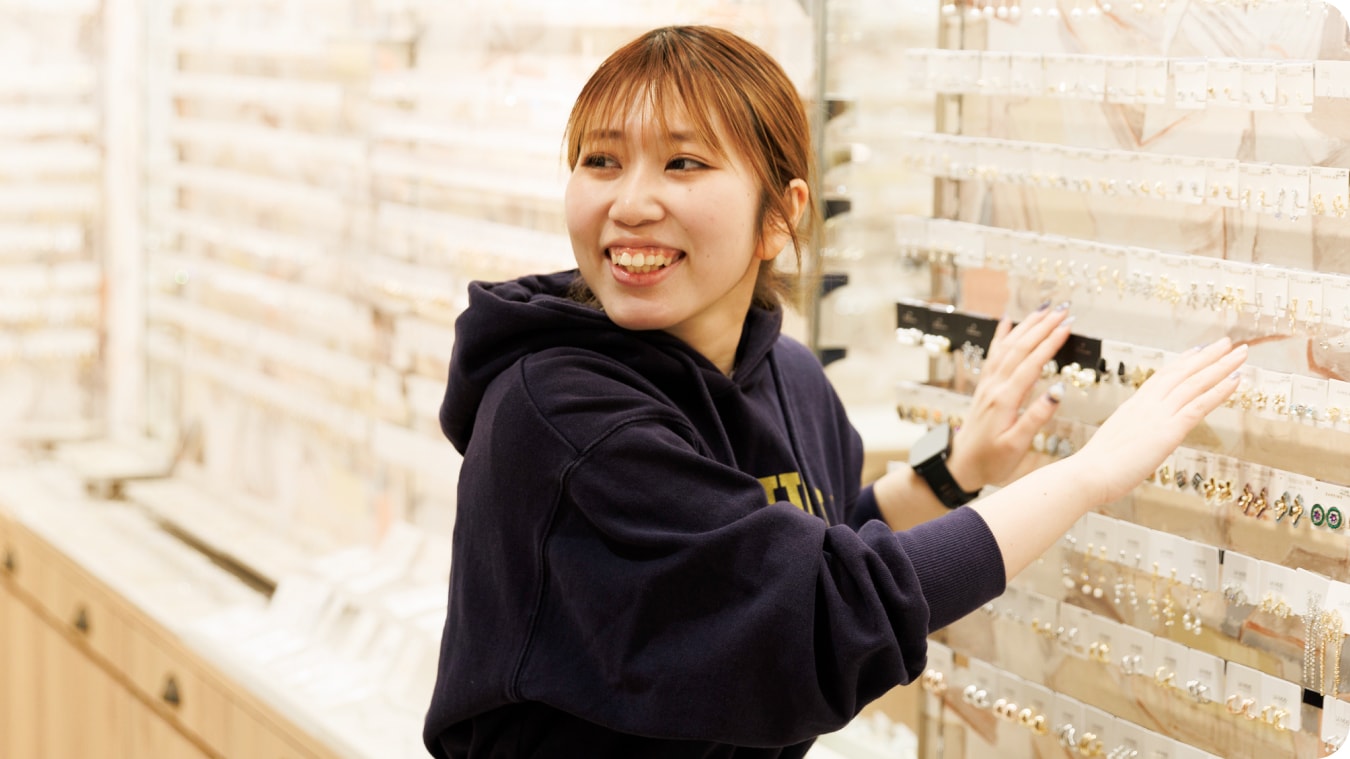 そのために、店舗での経験を大切にしながら、アクセサリーのパーツデザインや商品開発にも携わり、現場とものづくりの両面からブランド価値を高めていきたいと考えています。
